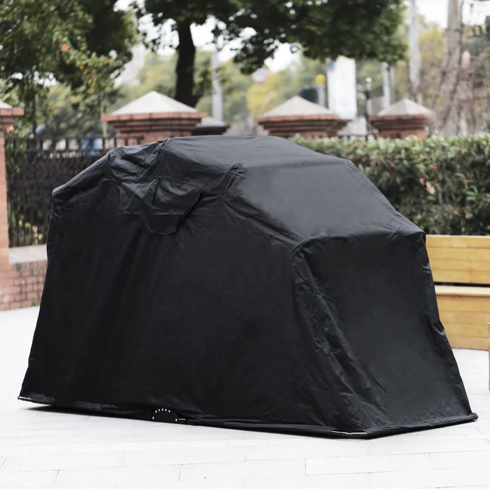 Promo Heavy Duty Motorcycle Shelter Shed Cover Storage Garage Tent Larger Motorbikes Sturdy Metal Frame S