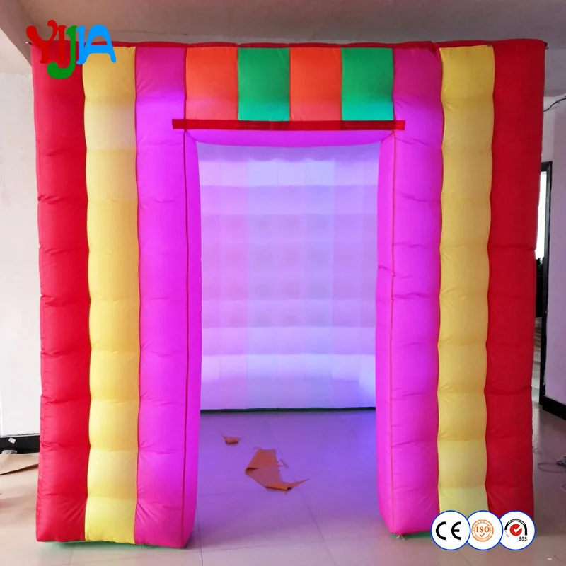 Special Free shipping 8ft colorful LED inflatable photo booth tent cube with 2 doors for party
